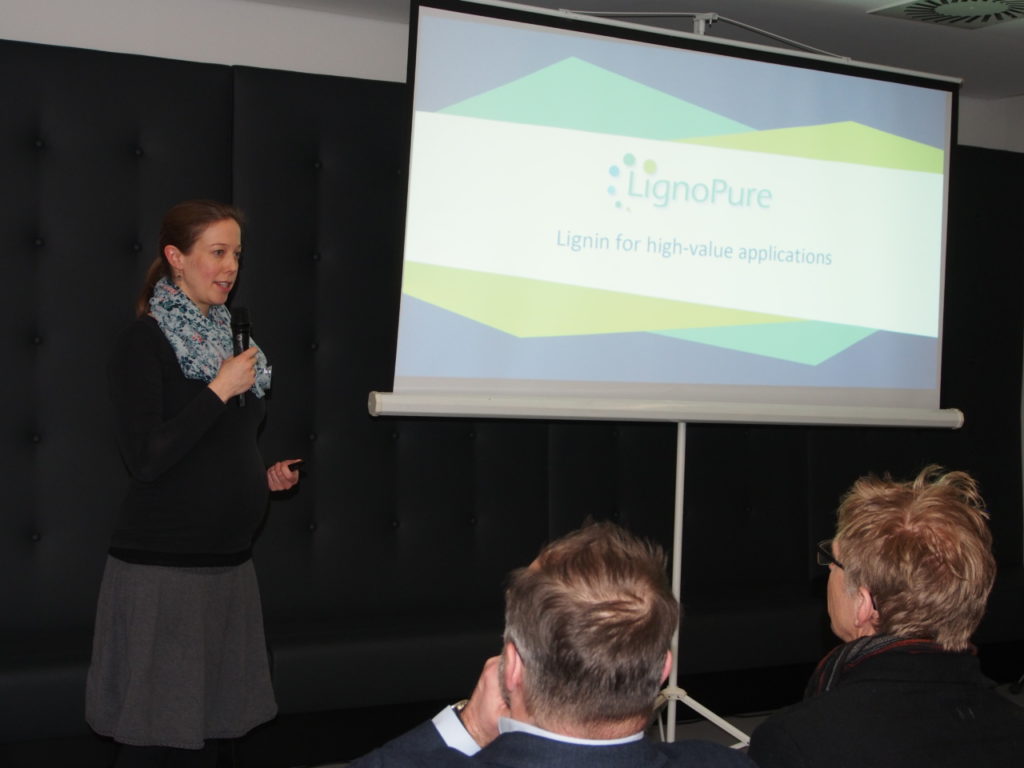 Wienke Reynolds, co–founder and CTO of Lignopure, explained the possible applications of bioplastics made from lignin. The huge advantage: these materials have properties like petroleum-based plastics but are biodegradable. Lignols from lignin are the basic material for injection-molded granules, adhesive tape, leather substitutes, insulation materials and much more. Lignin can be used to make “rubber wheels” as well as carriers for pharmaceuticals. Cosmetics, pharmaceuticals, food additives – whatever is desired can be discussed and developed with the Lignopure team, because the specialists from the Hamburg University of Technology in Harburg (TUHH), offer one thing especially: the concept development of sustainable products based on natural lignin (about a quarter of the lignified mass of plants consists of lignins – without this substance, trees could not grow tall and maintain stability).